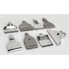 8200CY系列吹風噴嘴采用射出成型并結合超音波和熱板溶方法使該類噴嘴并具有良好的消音、整流的優點。吹風效果明顯高于傳統的風刀、該類噴嘴設計有多個柱形噴射氣孔空氣由此吹出而形成扇形和圓形空氣流、其內部結構設計呼和空氣動力學原理、有效降低了運行時的氣流、確保了吹風噴嘴在降低工作噪音和空氣耗量的同時也能獲得高氣流沖力。該類噴嘴對于局部、內孔、長距離的吹掃應用比較廣泛。適用于1/4英寸外螺紋連接頭、并設計有定位孔(ABS噴嘴)、便于噴嘴的并排安裝、其形成的組合式風刀能產生有效的空氣簾。該類噴嘴*般提供ABS、鋁合金或不銹鋼材質制作。
