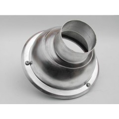 9400可調式強冷風噴嘴是由風嘴、內底座、外底座及固定法蘭組成,兩底座在固定風嘴的位置之間隔有密封條,具有密封和消音作用。根據風壓*定,噴嘴孔橫截面積越小,風速越大的原理,進風口與出風口直徑的遞減式縮口設計,使風量集中,流速加快而具有“強冷風噴嘴”的美稱,*般采用金屬材質沖壓成型,特殊需求下也可以采用不銹鋼材質。