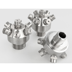 8503型噴嘴的特點是在其主體上設計了多個噴水孔,使噴霧角度達到270度以上,可對容器進行全面沖洗。