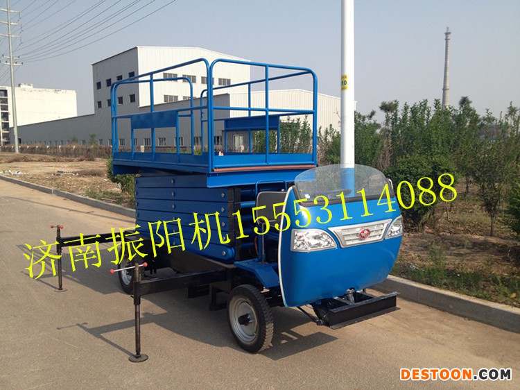 4、采用汽車、三輪車或電瓶車底盤做平臺底架,利用本車發動機或直流電做動力,既可行駛又可驅動平臺升降。