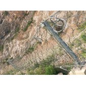 每絲繩網與四周支撐繩間用縫合繩縫合連結并拉緊,該預張拉工藝能使系統對坡面施以 定的法向預緊壓力,從而提高表層巖土體的穩定性,盡可能地阻止崩塌落石的發生,并將小部分落石限制在 定的空間內運動,同時,在鋼繩網下鋪設S02.250型格柵網,以阻止小尺寸巖塊的塌落。人工配合機械對坡面防護區域的浮土及浮石進行清除;根據地形條件,孔間距可有0.3m的調整量,并在每 孔位處鑿 定深度不小于錨桿外露環套長度的凹坑, 般口徑20cm,深20cm;鉆孔1 、錨孔鉆進:成孔勻速鉆進,嚴格控制鉆孔速度,以防止鉆孔彎曲和變形。