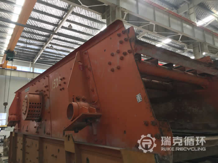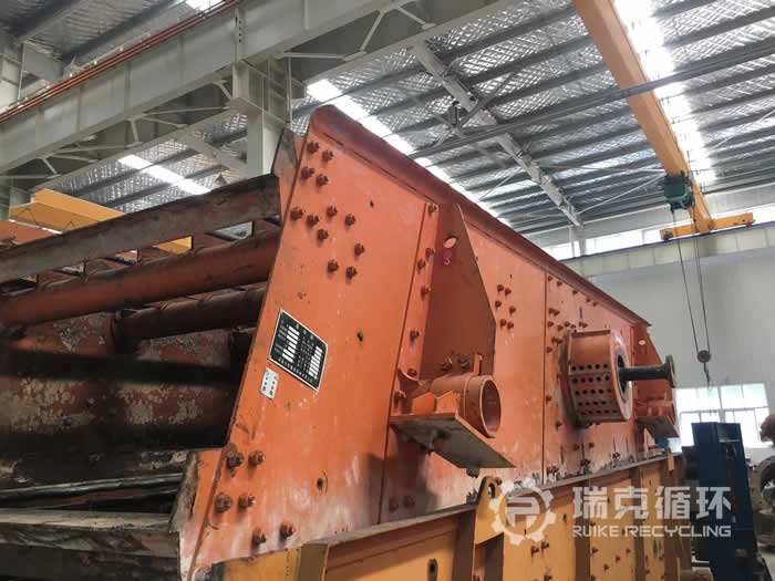 該臺2YK1860振動篩是我集團公司洛陽大華重機生產的,被銷往甘肅某地之后 直從事青石的篩分工作,在我公司除了有易損件更換之外沒有其它方面的維修記錄,于2019年6月被我公司回收,我公司技術人員也到現場檢查了該臺振動篩的實際情況,確定設備和客戶描述的沒有什么差別之后將設備運回公司,在我公司車間現場對該設備拆機檢查、檢修,完成檢修之后進行了數個小時的試機,試機中該臺振動篩性能非常的穩定,沒有出現不良現象,可根據客戶需要安裝篩網,出售前重新噴漆。