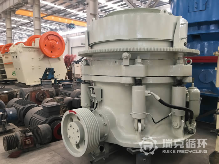 該臺黎明重工HP300圓錐破碎機是我公司今年10月份在內蒙古回收的,在回收之前我公司技術人員 到現場到設備進行檢查,沒有什么重大受損之后準予回收。設備運回公司之后,在車間將設備清洗干凈后把設備整體拆開,技術人員用測量以前檢查設備的每 個零部件的實際狀況,完成檢查之后技術部分依據檢查結果下發了檢修方案。經過技術人員對設備檢修之后,在我公司試機平臺進行了試機,在數個小時的試機中設備運行的非常穩定,沒有出現不良現象,然后重新進行了噴漆。