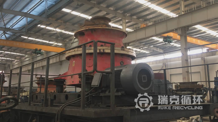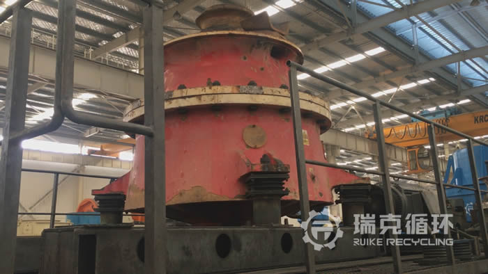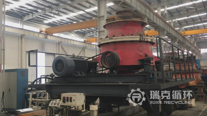 該臺(tái)GP500圓錐破碎機(jī)是我公司在四川回收的,設(shè)備在回收之前從事玄武巖的破碎工作,由于和當(dāng)?shù)?個(gè)高鐵項(xiàng)目合作期滿,將設(shè)備轉(zhuǎn)讓給我公司。我公司接到客戶電話進(jìn)行溝通之后,派技術(shù)人員到現(xiàn)場(chǎng)查看設(shè)備,在現(xiàn)場(chǎng)沒有檢查出較為嚴(yán)重的損壞之后將設(shè)備運(yùn)回公司。在我公司車間 對(duì)設(shè)備進(jìn)行之后,然后把設(shè)備整體拆開,用測(cè)量?jī)x器檢查零部件的情況,根據(jù)實(shí)際檢查結(jié)果制定檢修方案,完成檢修以后在試機(jī)平臺(tái)上進(jìn)行數(shù)個(gè)小時(shí)的試機(jī),設(shè)備在試機(jī)中性能比較穩(wěn)定,符合相關(guān)技術(shù)要求。