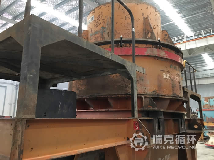 該臺PL1000制砂機是我公司在山西某地回收的,該設(shè)備從安裝之后 直從事石灰石制砂工作,由于石灰石的硬度較軟,設(shè)備損耗也比較小,和我公司且談好回收事宜之后,我公司技術(shù)人員即刻趕往現(xiàn)場對設(shè)備進行檢查,發(fā)現(xiàn)沒有較大問題之后將設(shè)備運回公司。對設(shè)備清洗之后將設(shè)備拆來檢查,技術(shù)人員用測量儀器仔細檢查零部件的實際情況,然后將檢查結(jié)果作為依據(jù)制定檢修方案,完成檢修之后進行4-8小時的試機,在試機過程設(shè)備運行非常問題,性能符合要求之后方能銷售。