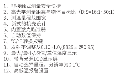本系列產(chǎn)品可大范圍的測(cè)量溫度量程,適用于更多的工業(yè)領(lǐng)域,是安全理想的非接觸式測(cè)溫工具。