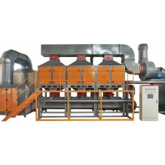 催化燃燒設備主要由換熱器、催化床、電加熱器、燃燒室、蓄熱體等幾大部件組成。加熱管 加熱催化燃燒設備,通過風機的作用,提供活性炭解吸所用的溫度(80~120℃),解吸后的有機廢氣再進入催化燃燒設備內部,在燃燒室通過催化床的作用,在250~350℃溫度下對廢氣進行氧化分解,分解成小分子化合物,例如水和***。通過換熱器將達標后的氣體熱量回收利用,達到的目的。有機廢氣催化燃燒處理設備是使廢氣在催化劑的催化作用下在250~350℃的溫度下發生氧化分解的廢氣處理設備。由于催化劑加速了氧化分解的歷程,大多數碳氫化合物在300~450℃的溫度時,通過催化劑就可以氧化完全。相對于直接燃燒設備680~1050℃的高溫,催化燃燒設備具有更多的優勢。