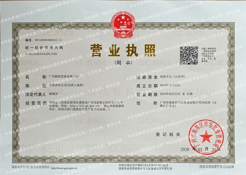 | 發(fā)證機(jī)構(gòu): | 廣州市海珠區(qū) | 發(fā)證時(shí)間 : | 2020-03-05 |