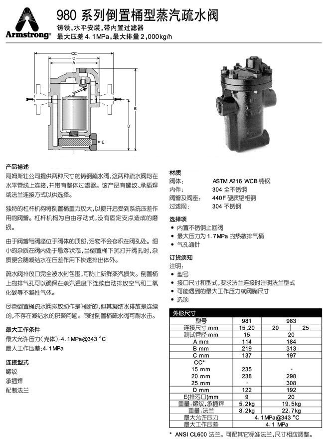 阿姆斯壯公司提供兩種尺寸的鑄鋼疏水閥,這兩種疏水閥均在水平管線上連接,并帶有整體過濾器。該產品有螺紋、承插焊或法蘭連接方式以供選擇。