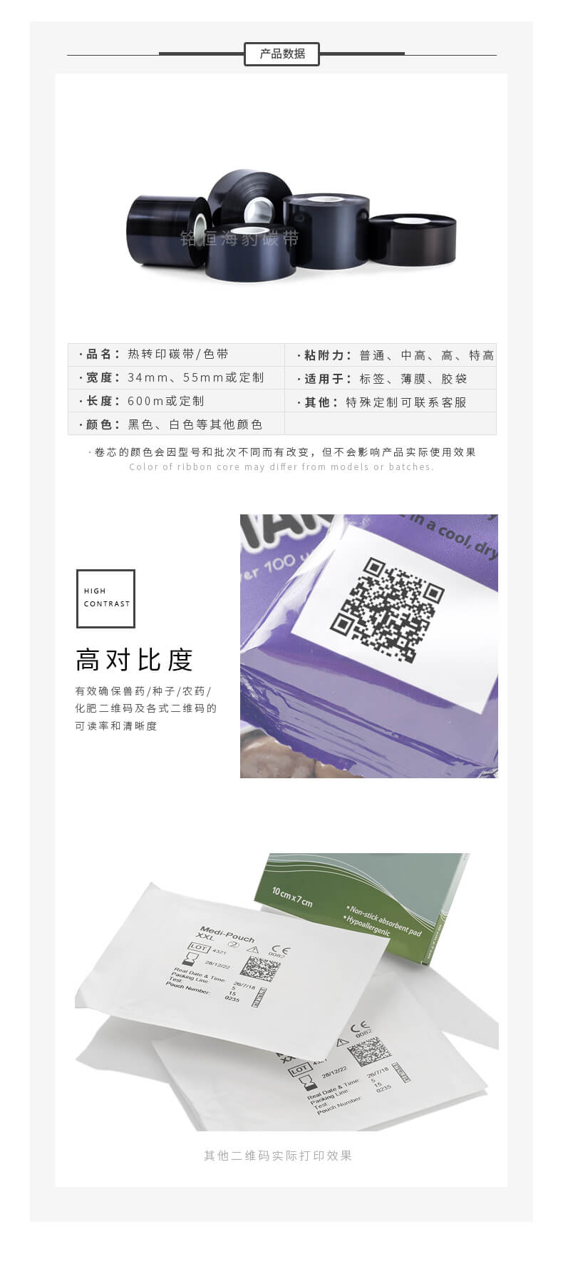 廣州銘恒貿易有限公司 專業碳帶生產廠家打印獸藥/種子/農藥/化肥二維碼專用碳帶 熱轉印打碼機色帶可免費打樣可開票批發代理