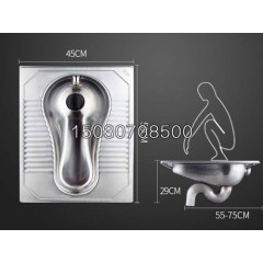 XKD-805不銹鋼反水彎蹲便器的工作原理,就是利用反水彎拐彎處,造成 個“水封”,防止下水道的臭氣倒流。這個返水彎的高度得看你是采用的什么型的返水彎,以及下水道水平干管的高度。如果水平干管比地面低的不太多,應該采用 P 形返水彎,可以用 截帶承插口短管來配合安裝高度,沒有規定長度,使得水平管有坡度就行。這 段短管在蹲便器和返水彎之間。如果是樓房立管留出的接水口在樓板下面,或者干管的位置比較低,就應該采用 S 形返水彎,在蹲便器的下面用 截帶承插口的短管補上高度差。總之,沒有這個高度的嚴格規定,如果在裝修時,蹲便器的地面起 個臺階高度,還得加上這個尺寸。