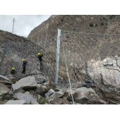 主動邊坡防護網,防腐壽命長達30到100年,若因超負荷而發生防護網破壞時, 般只需要更換或修復少量構件及可,使防護網的維護更方便。SNS柔性防護網系統是用以鋼絲繩網為主的各類柔性網覆蓋包裹在需防護的斜坡或巖石上,以限制坡面巖土體的風格的分化剝落或破壞以及危巖崩塌(加固作用),或者將落石控制于范圍內運動(圍護作用)。SNS柔性防護網具有高韌性、高防護強度,易鋪展性。適應任何坡面地形,安裝程序標準化、系統化。系統采用模切化安裝方式,縮短了工期和施工費用。系統材料的特殊制造工藝和高防腐防銹技術,決定了系統的壽命。能將工程對環境的影響降到底點,其防護區域內可以充分的保持土體,巖石的穩固,便于人工綠化,有利環保。