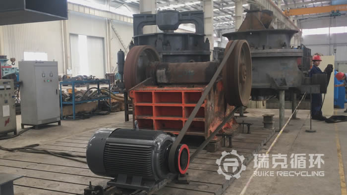 該臺300 ×1300顎式破碎機從集團公司購買之后在河南某地從事青石的破碎工作,在使用產量和性能都比較穩定,由于企業生產工藝改變,這臺顎破滿足不了生產的需要,與我公司聯系置換600×900顎破,根據客戶描述使用只更換了易損件,除此之外沒有其它故障,我公司調取總公司售后記錄在之后,到現場對設備進行檢查,除了外觀有明顯呢的銹跡以外,其它部位保存比較良好,設備運到公司之后將設備清洗、拆機、檢查,依據檢查結果下發檢修方方案,完成檢修之后在我公司司機平臺上進行試機運行,試機中該設備性能穩定,符合出廠標準。